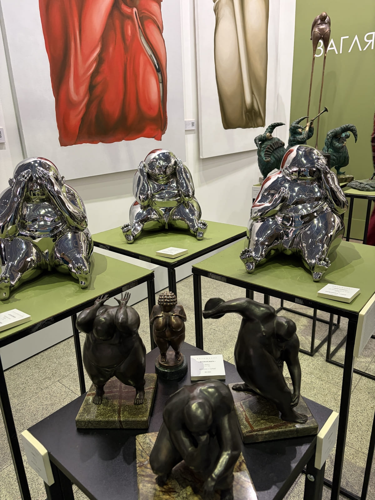 Эксперт по искусству, президент компании Luxpodarki.ru Анжелика Кулагина прокомментировала работы скульптора Игоря Воложанина, представленные на ярмарке современного искусства «Арт Россия», прошедшей в Гостином дворе.