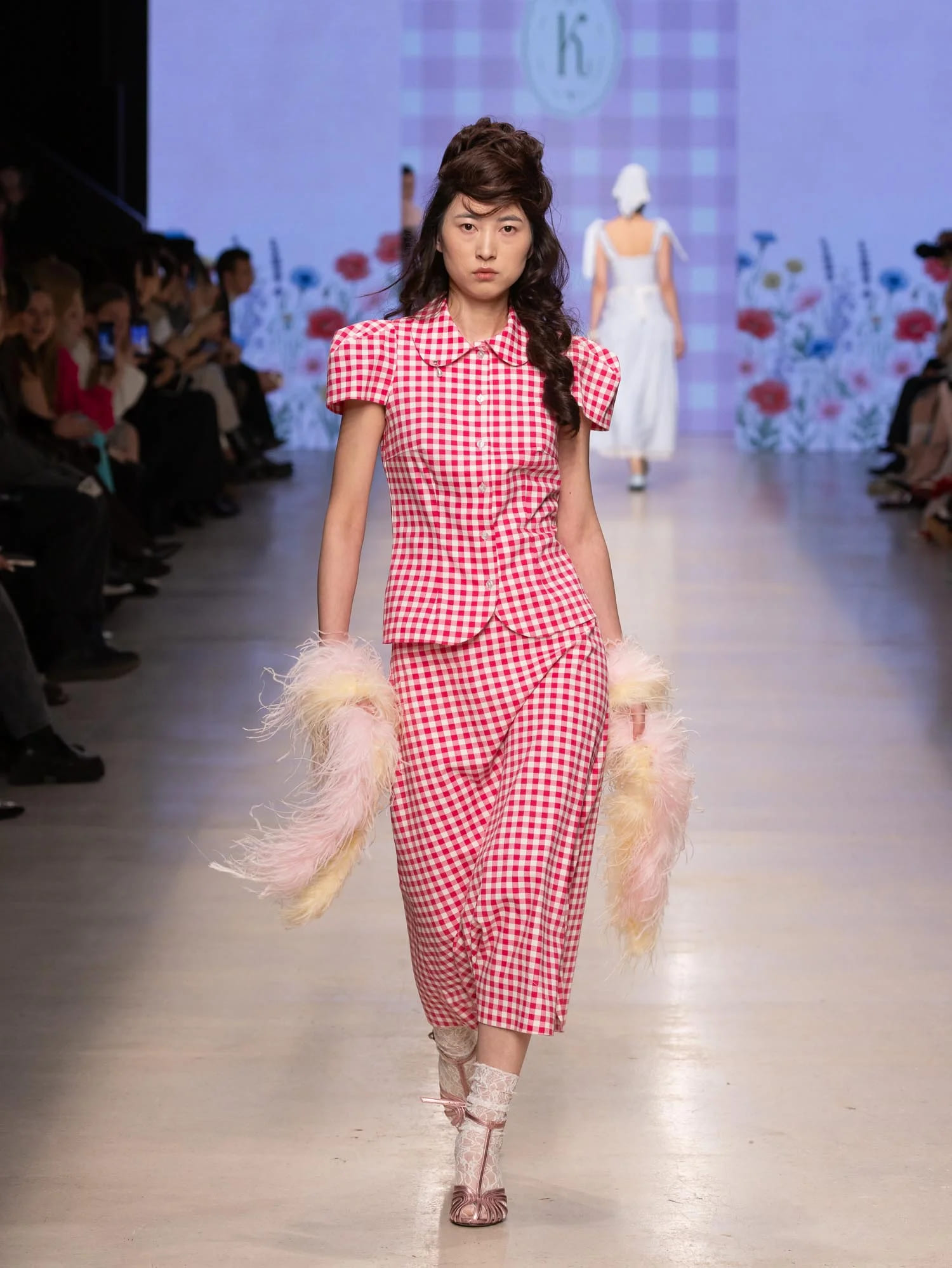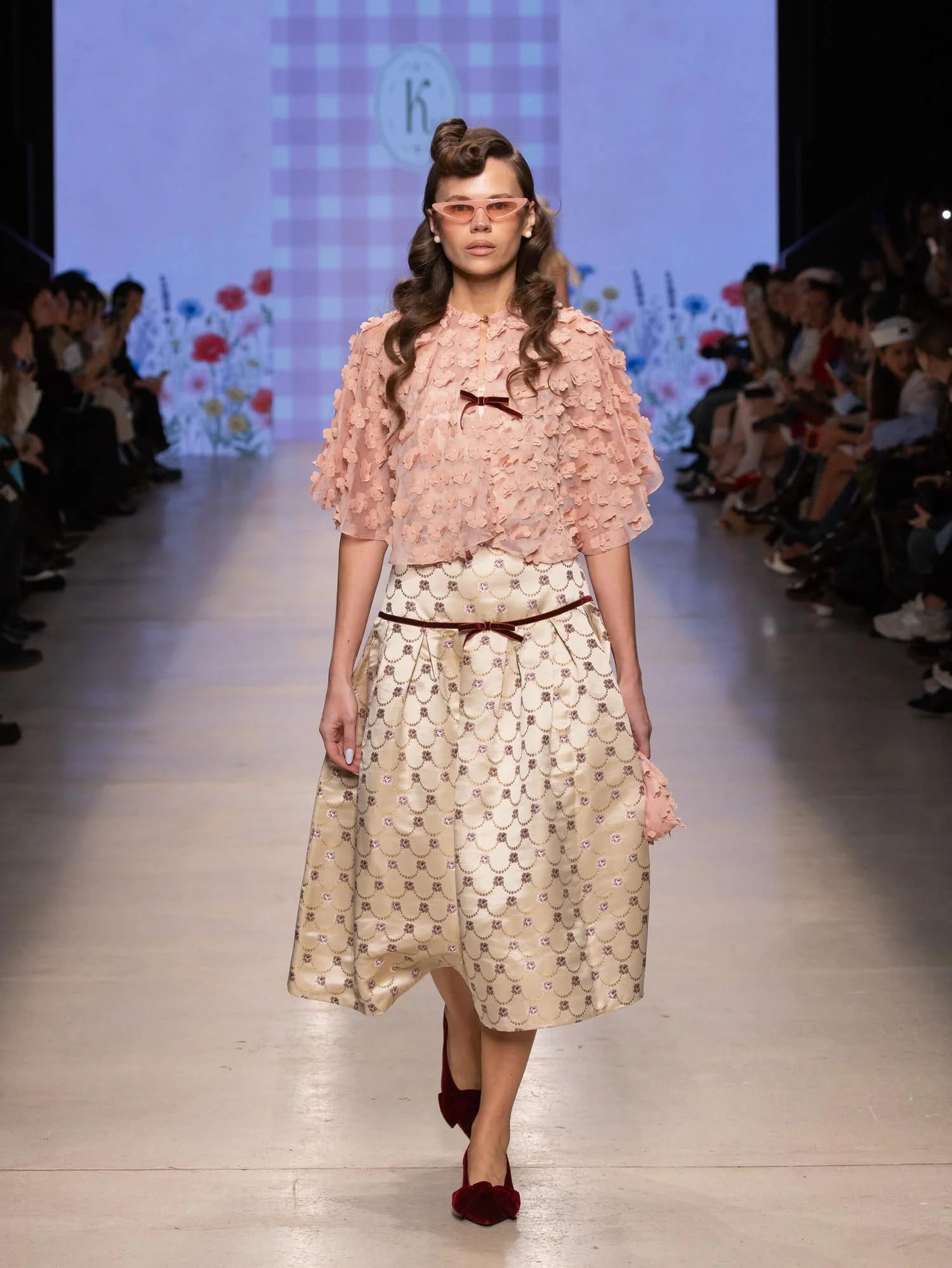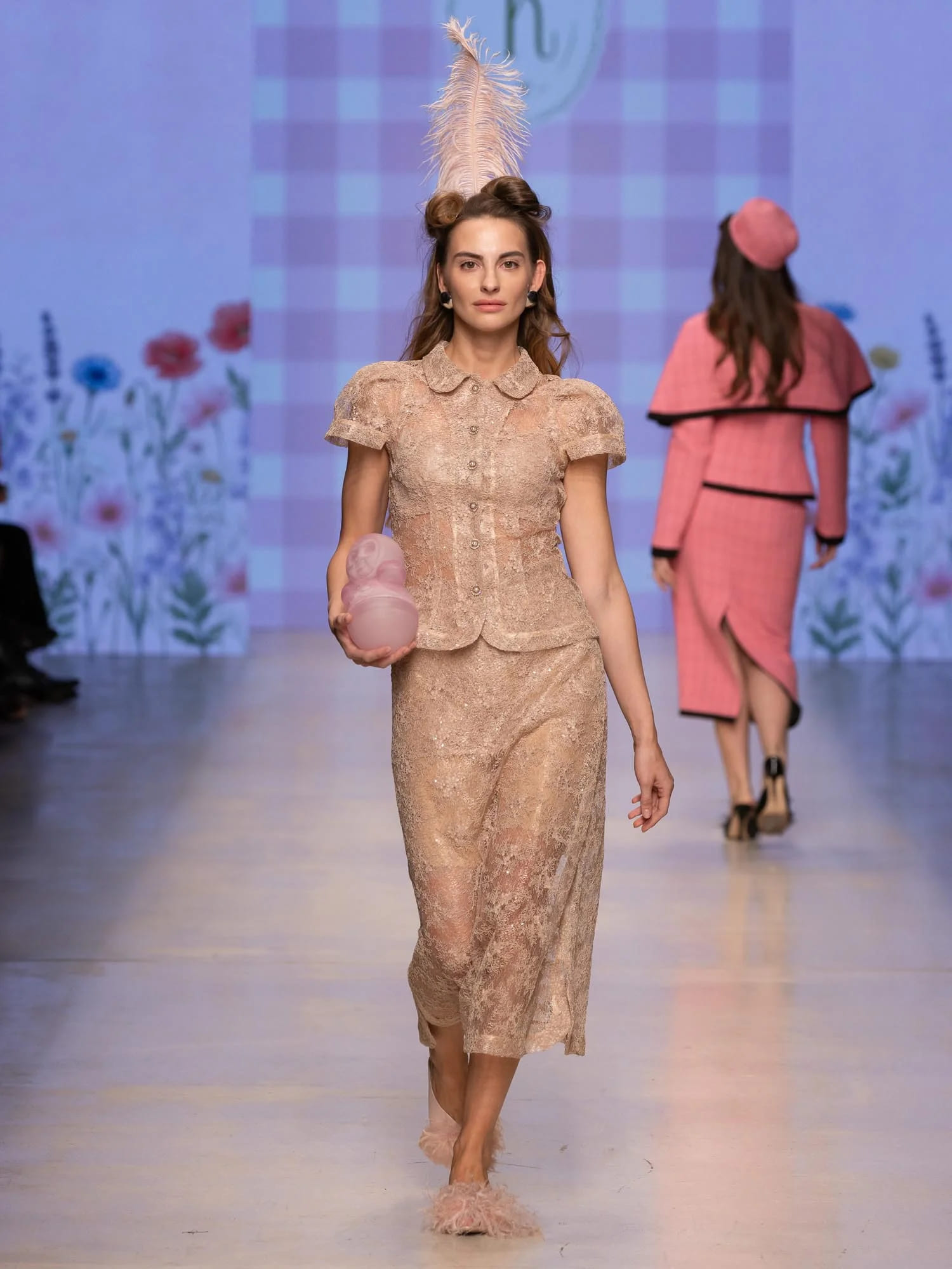 Визуально коллекция демонстрирует новую романтику с характером: жакеты с архитектурным кроем, яркие платья, многослойные образы с эффектом продуманной небрежности.