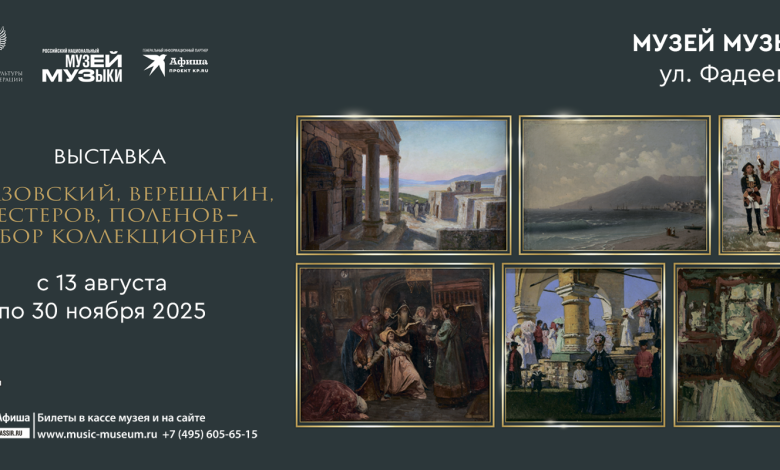 В Российском национальном музее музыки работает художественная выставка «Айвазовский, Верещагин, Нестеров, Поленов – выбор коллекционера». Экспозиция будет открыта до конца…