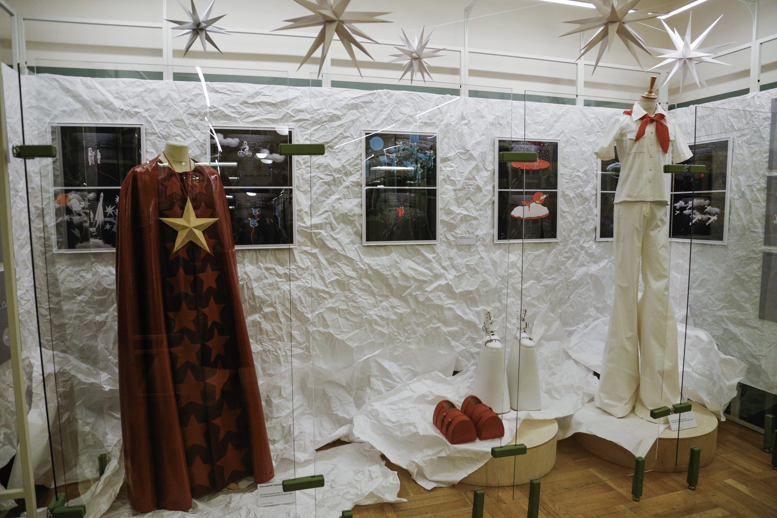 На новой выставке куратор Марфа Бубнова представила зарисовки и эскизы к постановкам «Синяя птица» Мориса Метерлинка, «Жизнь человека» Леонида Андреева, макеты, а также фотографии и костюмы из действующих спектаклей. Пространство украшено звездами, а на фоне играет музыка Баха. Таким образом, происходит погружение посетителей в ирреальный фантастический мир, раз за разом создаваемый на сцене Московского Художественного театра.