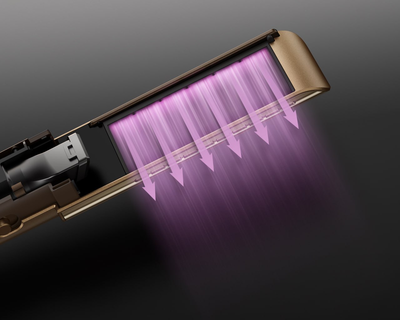 Процесс сушки и укладки будет простым, быстрым и безопасным. Всё дело в особенности устройства — мощный двигатель на 110 000 об/мин обеспечивает высокую скорость воздушного потока (50 м/с) для эффективной сушки и выпрямления волос без необходимости предварительного нагрева, что значительно уменьшает тепловое воздействие, а следовательно оставляет волосы здоровыми и неповрежденными.