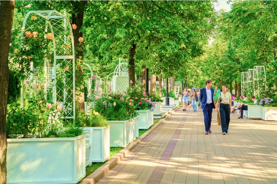 Никольскую улицу ко Дню Победы в Великой Отечественной войне украсили 30 тыс. алых гвоздик. На улице Кузнецкий Мост желающие могли прогуляться по аллее из лип и увидеть арочную галерею с ампельными растениями. В Камергерском переулке размещалось пространство для отдыха с лимонным садом и оливковыми деревьями.