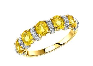 Кольцо с 5 сапфирами желтыми, 30 бриллиантами, в желтом золоте 585 пробы