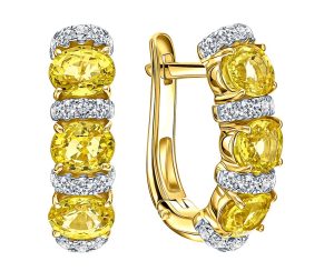 В комплекте с кольцом эти роскошные серьги смотрятся изумительно. Серьги очень нарядные, играют даже в полумраке, а на свету ослепительно сверкают. Желтые сапфиры очень напоминают желтые бриллианты, которые могут быть не по карману. Выглядят благородно и дорого. Сапфиры и бриллианты — это идеальное сочетание для женщин. Очень украшают и освежают лицо.