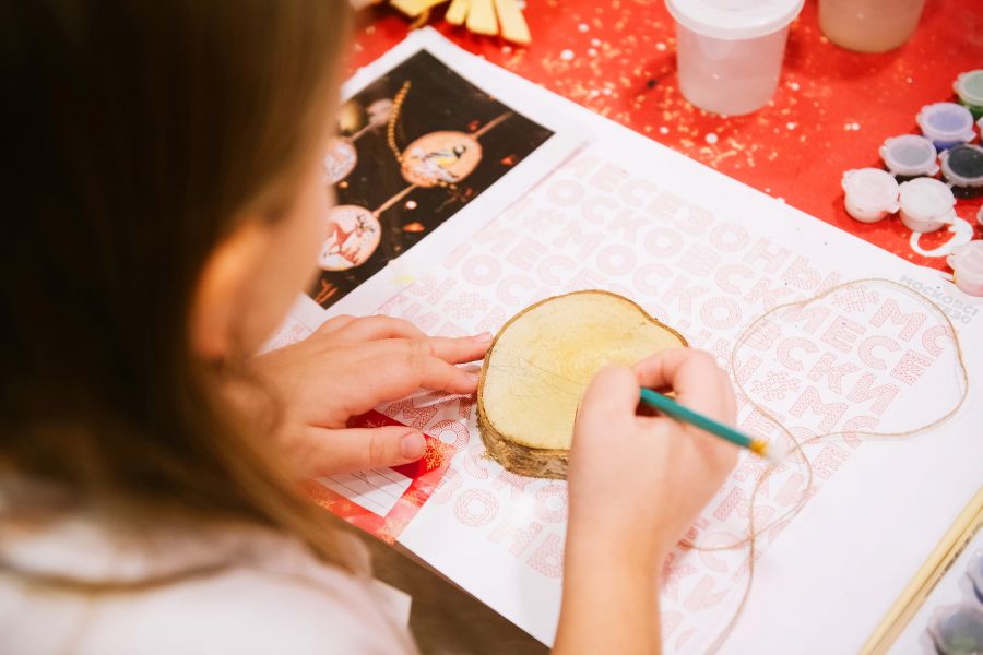 На Тверской площади ребята делают своими руками свечи из натуральной вощины, осваивают азы чеканки и мастерят металлическое елочные украшения. А в сквере по Олонецкому проезду дети расписывают керамические и деревянные елочные игрушки.