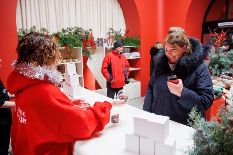 Флагманом по традиции стал маркет на Болотной площади. Его стилизовали под настоящую «Фабрику подарков». Гостей встречает сказочный конвейер с локальными товарами, ведущий к станции упаковки. Юные гости могут отправить отсюда письмо Деду Морозу.