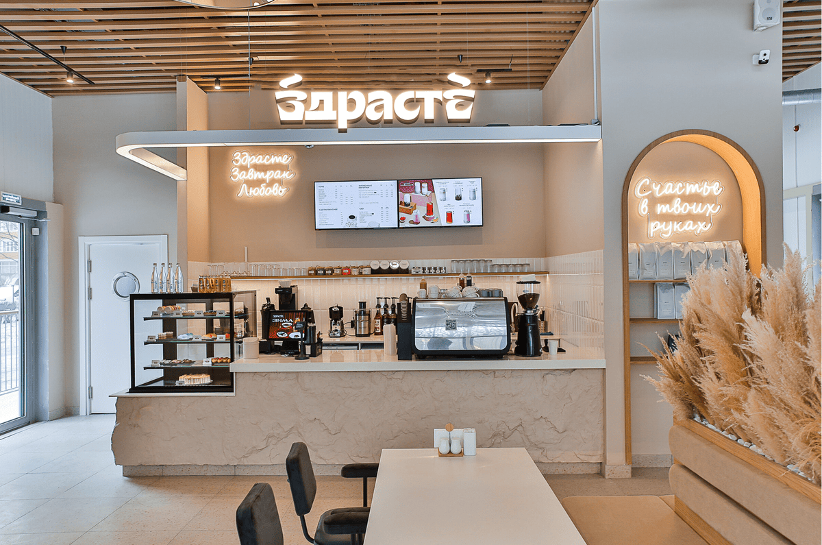 Сеть «ЗДРАСТЕ» основана в 2019 году в Подольске. На август 2025 года в России работает 100 кофеен в семи регионах, 90% из которых — франшизные. Формат сети сочетает кофейню с полноценной ресторанной кухней «из-под ножа», что стало ключевым драйвером роста.