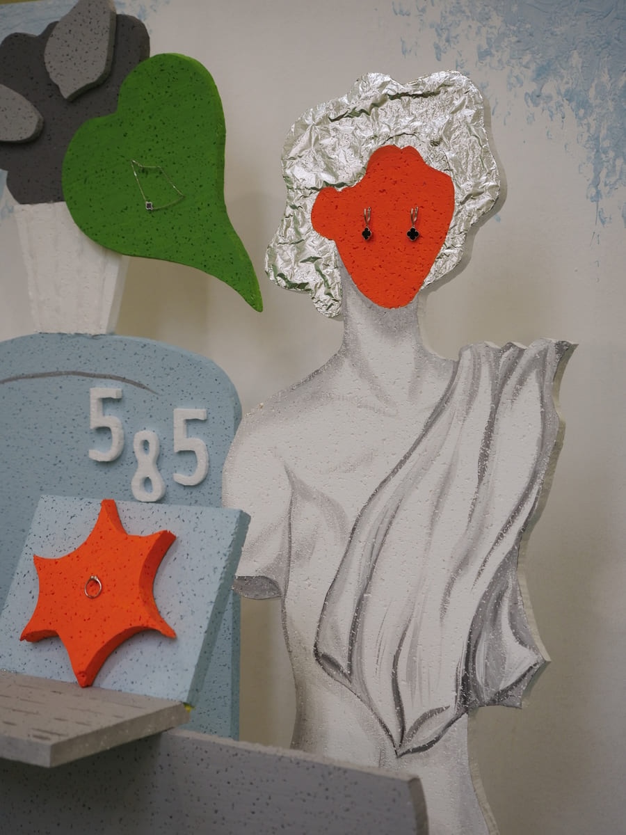 В рамках соревнования участники создавали витрины для коллекции серебряных украшений, используя подручные материалы и собственные креативные идеи.