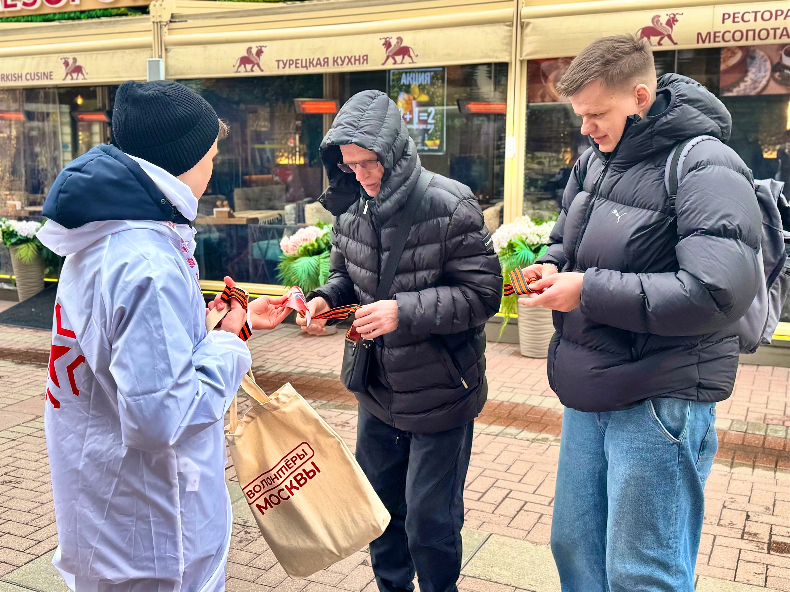 В преддверии Дня Победы Москва оживает в предвкушении одного из главных праздников страны. Одним из ярких проявлений этого настроения является акция по раздаче георгиевских ленточек, которая стартовала на Старом Арбате. Волонтеры, с энтузиазмом и гордостью, вручают символ памяти и уважения к подвигу поколения победителей жителям и гостям столицы.
