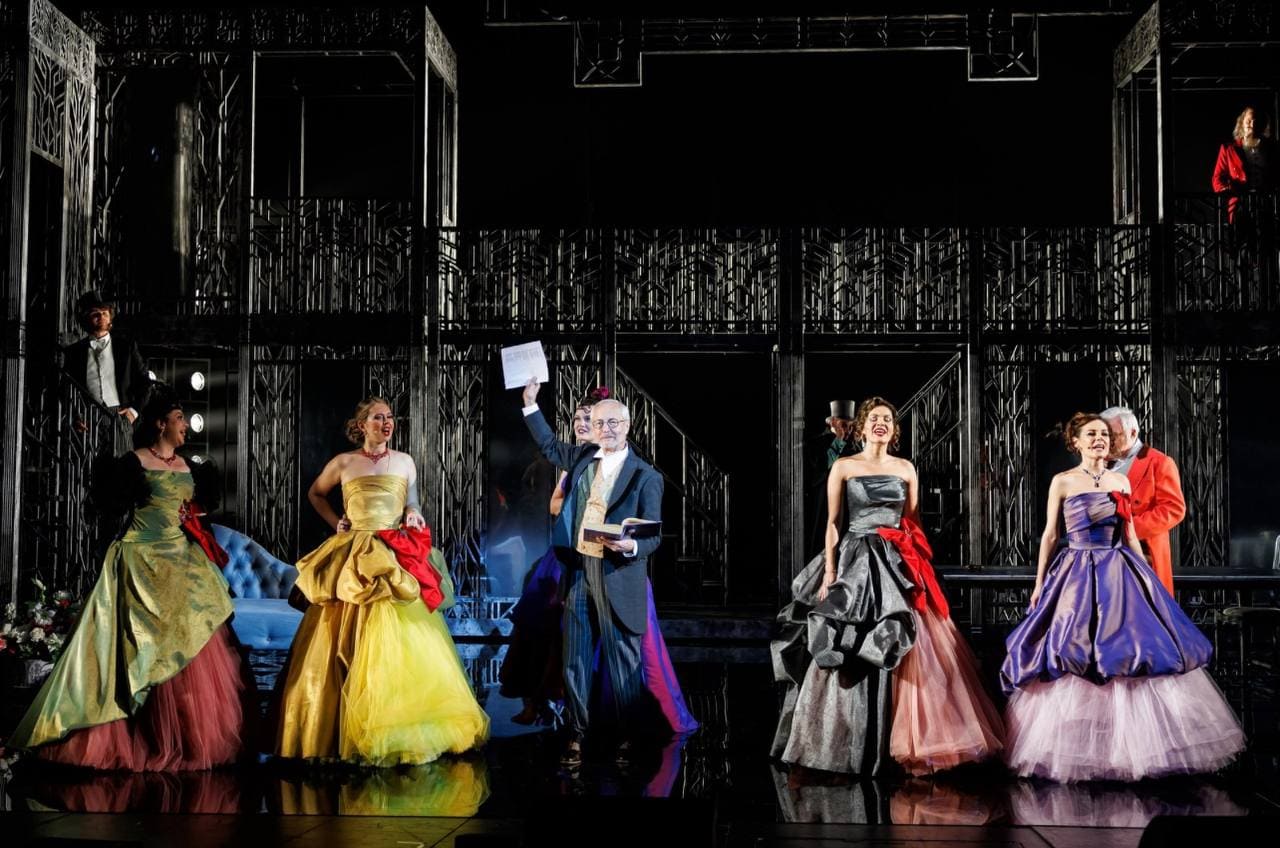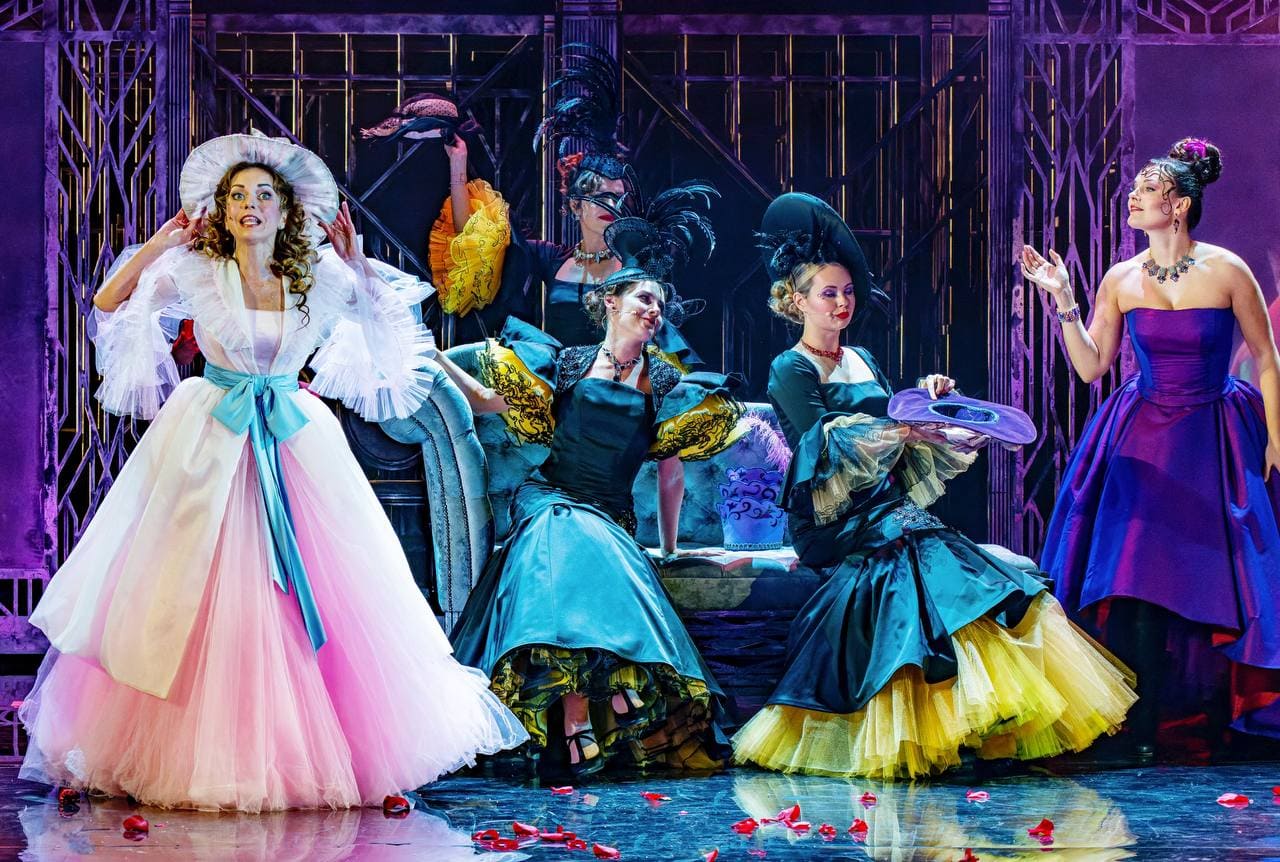 Постановка представляет собой музыкальный спектакль с обилием ярких танцевально-вокальных номеров и комедийными сценами. Костюмы персонажей передают дух классицизма, но вместе с тем вплетают в него немного современности. Они состоят из множества слоёв и заметных деталей. К примеру, платья танцоров олицетворяют собой сразу две стороны мира соблазнов: карточные игры и кордебалет из игорных домов прошлого.