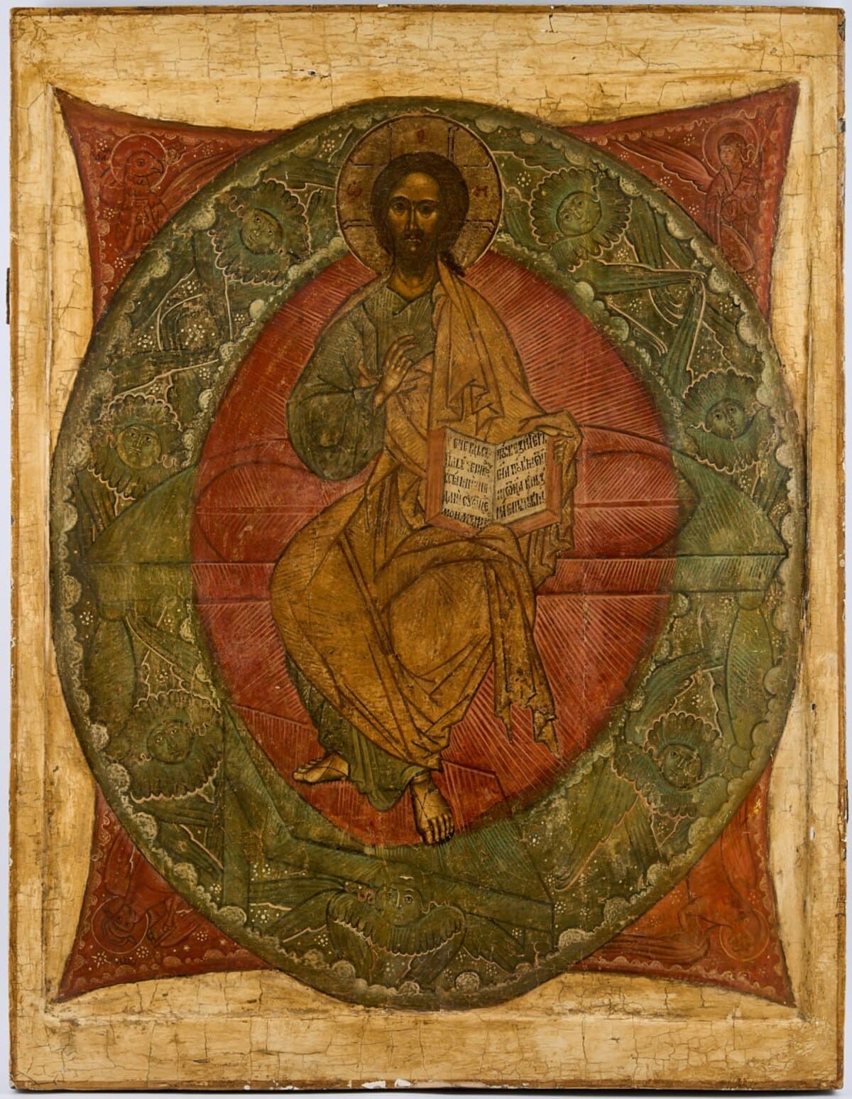 Вторым значимым лотом станет икона «Спас в силах» конца XVII века из северного Заволжья с эстимейтом 3 млн рублей. Произведение происходит из деисусного чина иконостаса и изображает Христа как Господа во славе на небесном престоле.
