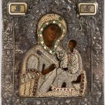 Третьим заметным лотом станет икона «Богоматерь Тихвинская» конца XVIII — начала XIX века из Нижнего Новгорода (эстимейт 1 млн рублей), выполненная в старообрядческих мастерских. Образ помещён в богато украшенную вышитую ризу и оклад.