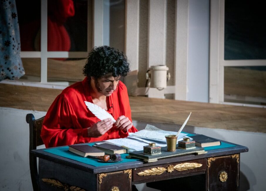 Сценография тоже не даёт заскучать. Одна локация здесь сменяется другой со скоростью дикого скакуна. Сначала зритель видит великосветские балы в Петербурге, затем таборную жизнь в бессарабских степях, после ссылку в родовое имение, а далее встречи с друзьями-декабристами, московские вечера с цыганами и женитьбу на Натали Гончаровой.